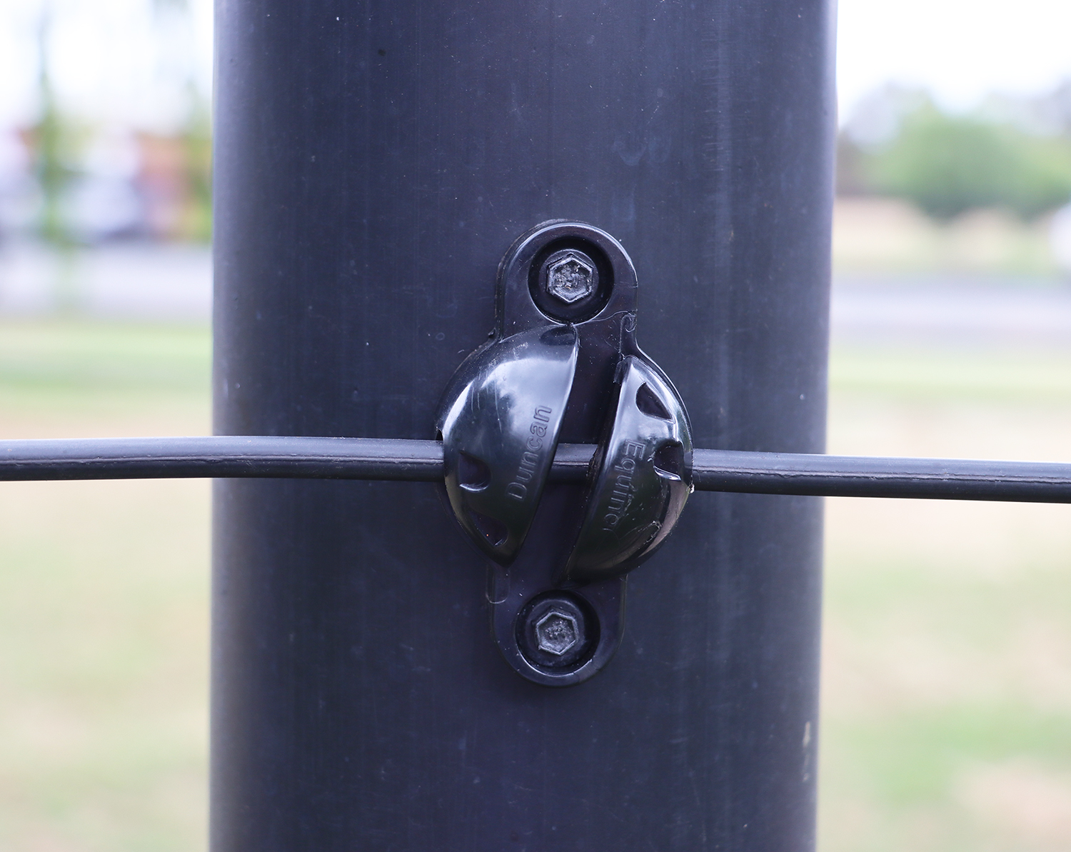An insulated heavy-duty plastic insulator that sits flush against the post. Ideal for timber or plastic posts.