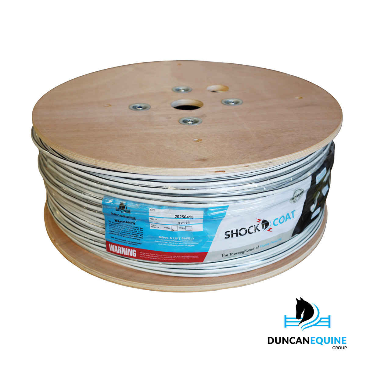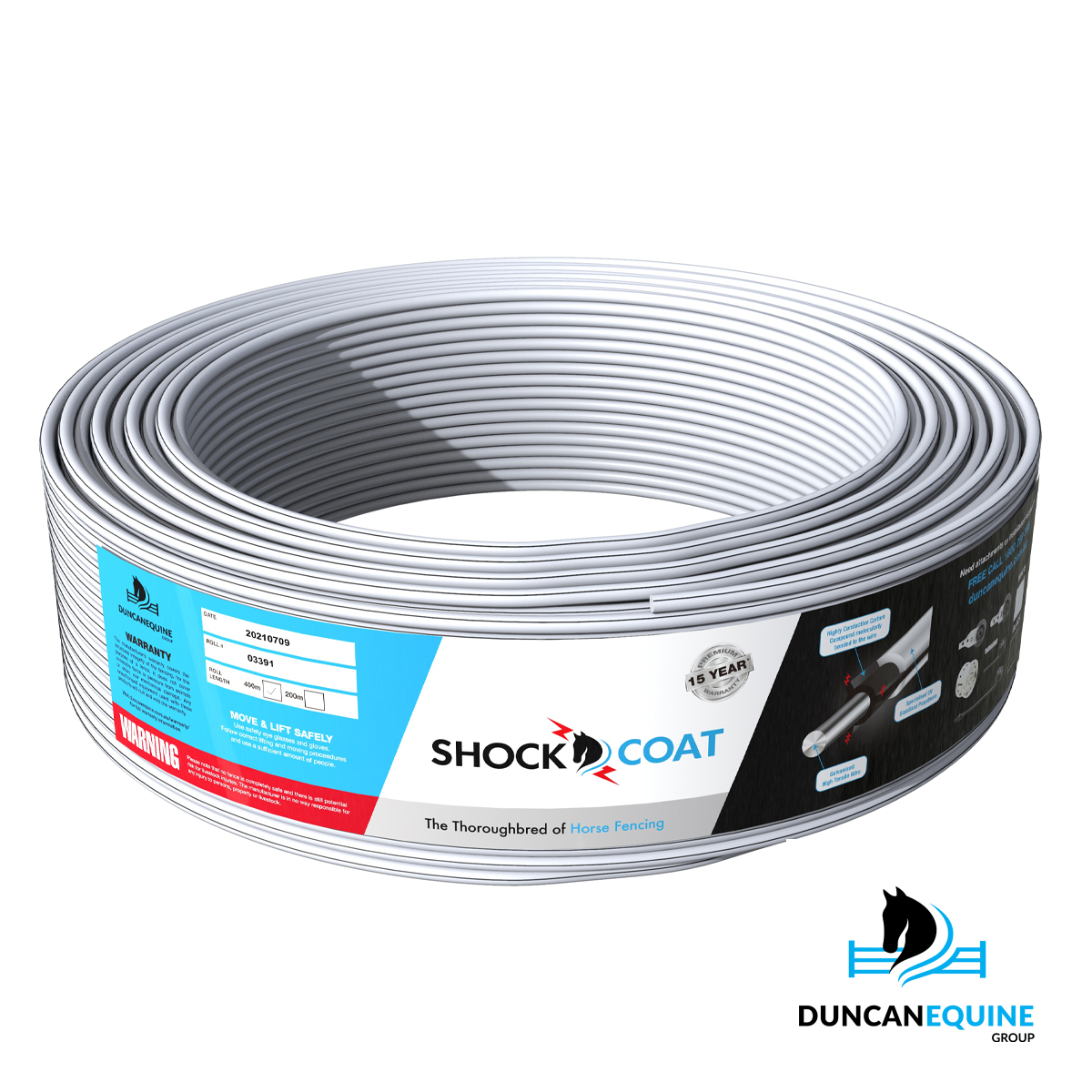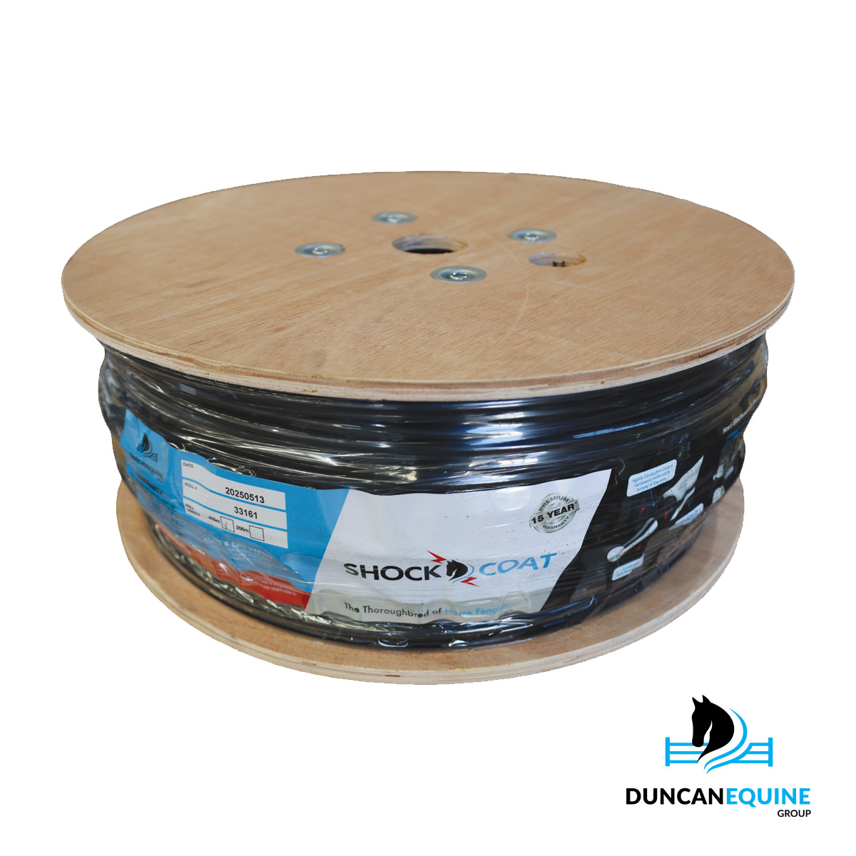 High Tensile wire has been skillfully encased with state-of-the-art, improved molecularly bonded conductive carbon, thickly surrounded by UV-stabilized polyethylene. Shockcoat is the safer alternative to plain wire.
