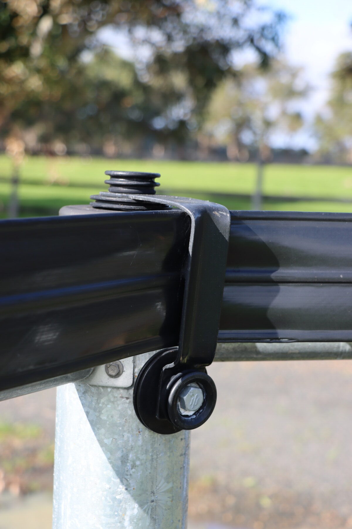 Insulated heavy-duty steel, hot-dipped and powder-coated bracket. Ideal for attaching to square, round, steel or timber posts.