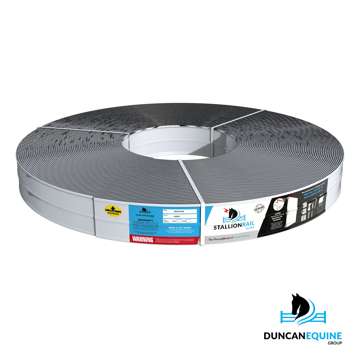 One edge is electrifiable, designed for use in horse paddock fencing and horse yards in any configuration. Stallion Rail is made from premium-grade, UV-stabilised polyethylene, molecularly bonded to three high-tensile stabilising wires. The carbon fibre molecular bonding delivers ultra-electrical conductivity and flexibility.